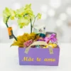 Uma linda cesta para o dia dos namorados ou outra data especial, com uma mensagem no coração de pelúcia, chocolates e pote de batata para complementar esta data especial.