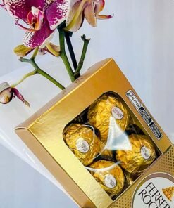 Lindo buquê com 12 rosas e 8 ferreros rocher